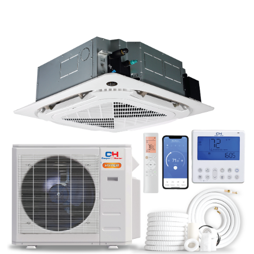Cooper&Hunter 24,000 BTU Hyper Pro Single Zone Four-Way Ceiling Cassette w/ Refrigerant & Humidity Sensor Minisplit Heat Pump System R454B 230V