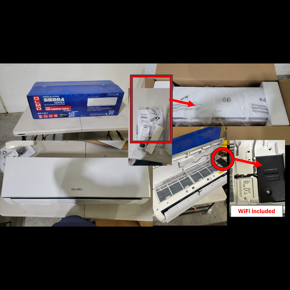 - Indoor Unit and Outdoor 230V Olmo Sierra Single Zone unit (12,000 BTU OLMO Sierra Series Wall-Mount). OS-12SRW-230VI + OS-SR12-230VO